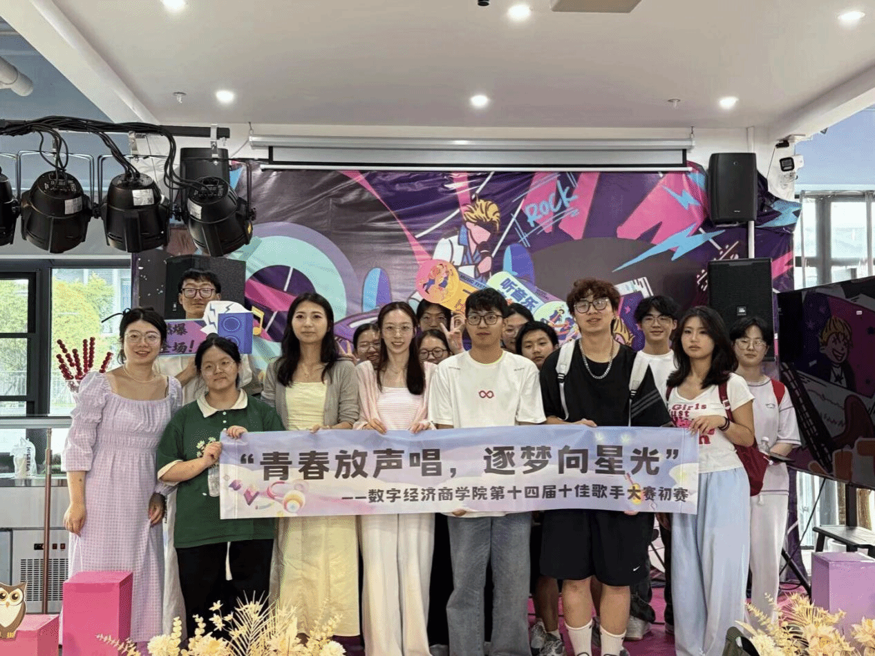 干饭人齐聚KTV,美食欢唱双狂欢。2025年9月12日12:30,备受瞩目的干饭人KTV活动在南州食堂二楼热力开唱。本次活动同时融合2025校园歌手大赛数字经济商学院初赛环节,不限主题,自选曲目进行清唱,旨在为热爱音乐的同学们提供展示自我的舞台、用歌声传递青春力量、用旋律谱写逐梦篇章。此次初赛由艺术修养与实践板块指导老师吴倩蓉老师、杨谦老师及新生辅导员秦枭宇老师、黄灿老师担任评委,主要从参赛选手的歌曲演绎、舞台表现、情感传达等多方面进行评分。