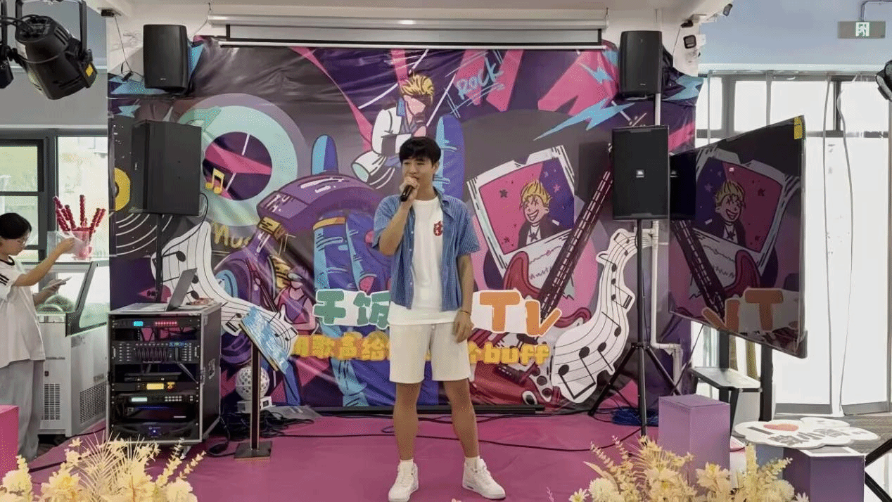 比赛过程中,选手们不仅展现出了扎实的演唱功底,更在舞台上释放出自信与活力。台下同学们挥舞着荧光棒,随着旋律轻声跟唱,不时为精彩演唱送上热烈掌声。后台的选手们上台前互相加油打气,下台后分享演唱心得,有人递上润喉糖,有人帮忙整理服装,赛场内外洋溢着友爱互助的青春氛围,处处透露着“边吃边干才够爽”的吃饭K歌氛围,美食的香气与歌声交织,更添几分轻松惬意。