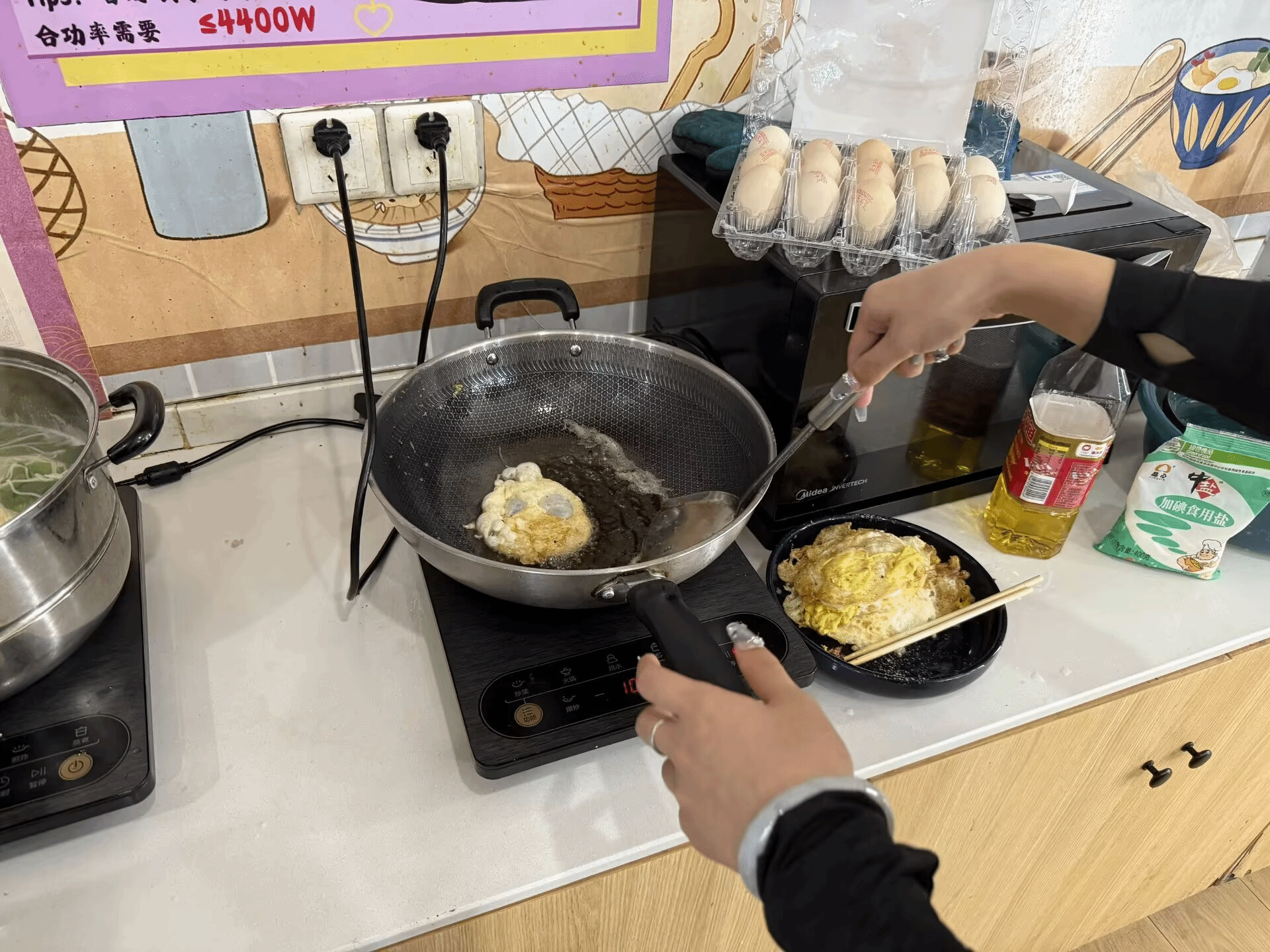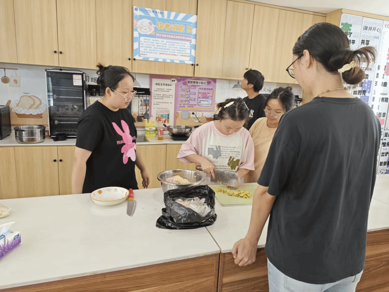 烹饪时刻,同学们化身专注的“美食创作者”。灶前,有人凝视着沸水中上下翻腾的面条,精准拿捏煮面的分秒;案边,有人手持小勺,将辣椒油、花椒、酱油等调料细细调和,眼神里满是对巴渝风味的执着追寻。大家或轻声交流心得,或为彼此的创意搭配喝彩,厨房中,锅碗相击的脆响、食材交融的轻吟与欢声笑语交织,谱成一曲灵动的美食乐章。