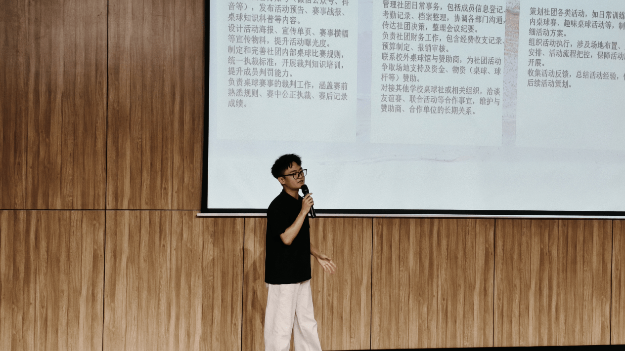 在见面会上,社团的三大核心部门依次亮相,清晰的职能让新成员对社团的运作有了更加直观的了解,社团负责人分别对宣传推广部,综合事务部,活动组织部进行了详细的介绍。