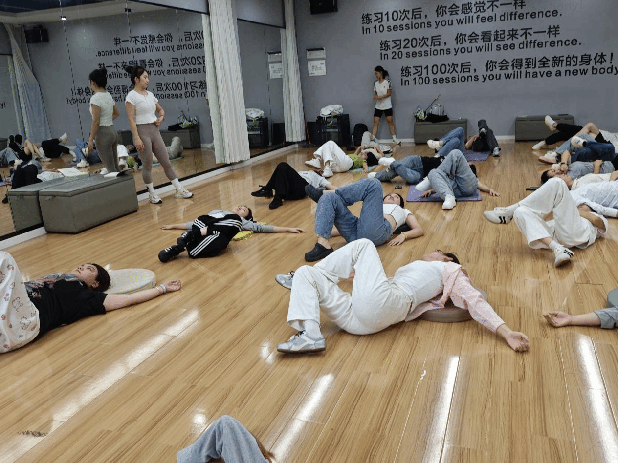紧随其后的实践教学环节将活动推向高潮。在齐乃琪老师的示范与带领下,参与者们有序进行了针对肩部、腰背部、臀部及下肢主要肌群的分步拉伸练习。老师对每一个动作的要领、呼吸配合方式以及常见错误进行了细致入微的讲解与纠正,确保参与者能够准确感知目标肌群的拉伸感,并避免代偿性动作。