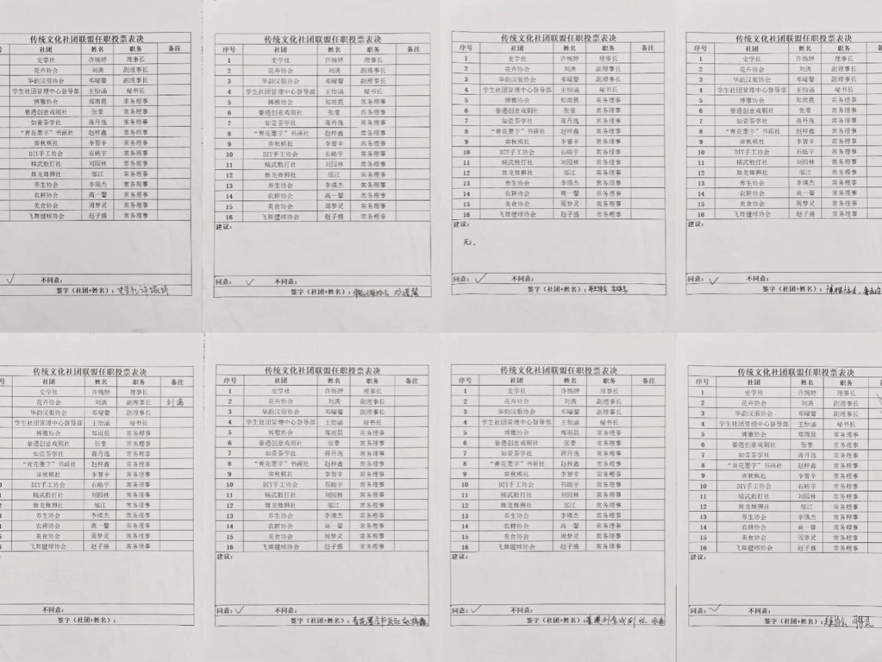 在换届选举环节,经各社团推荐与现场投票,史学社许婉婷同学当选为新任理事长,花卉协会刘满、华韵汉服协会邓曜馨当选为副理事长,学生社团管理中心督导部王怡涵担任秘书长,另有12名同学当选为常务理事,组成新一届理事会。