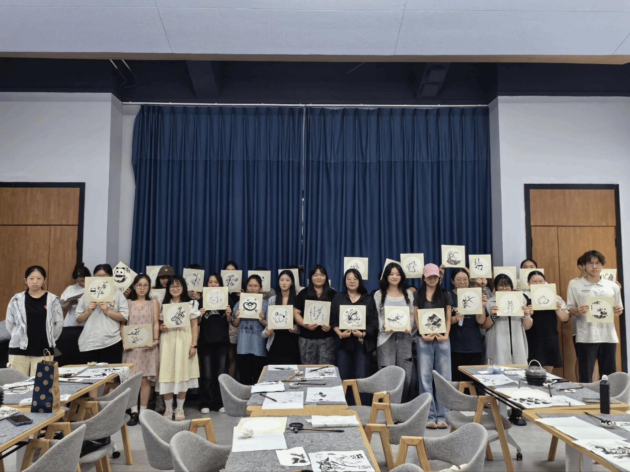 活动临近尾声,工作人员组织参与者们手持作品拍照留念,一张张笑脸与素雅的国画卡相映成趣,定格下这难忘的瞬间。