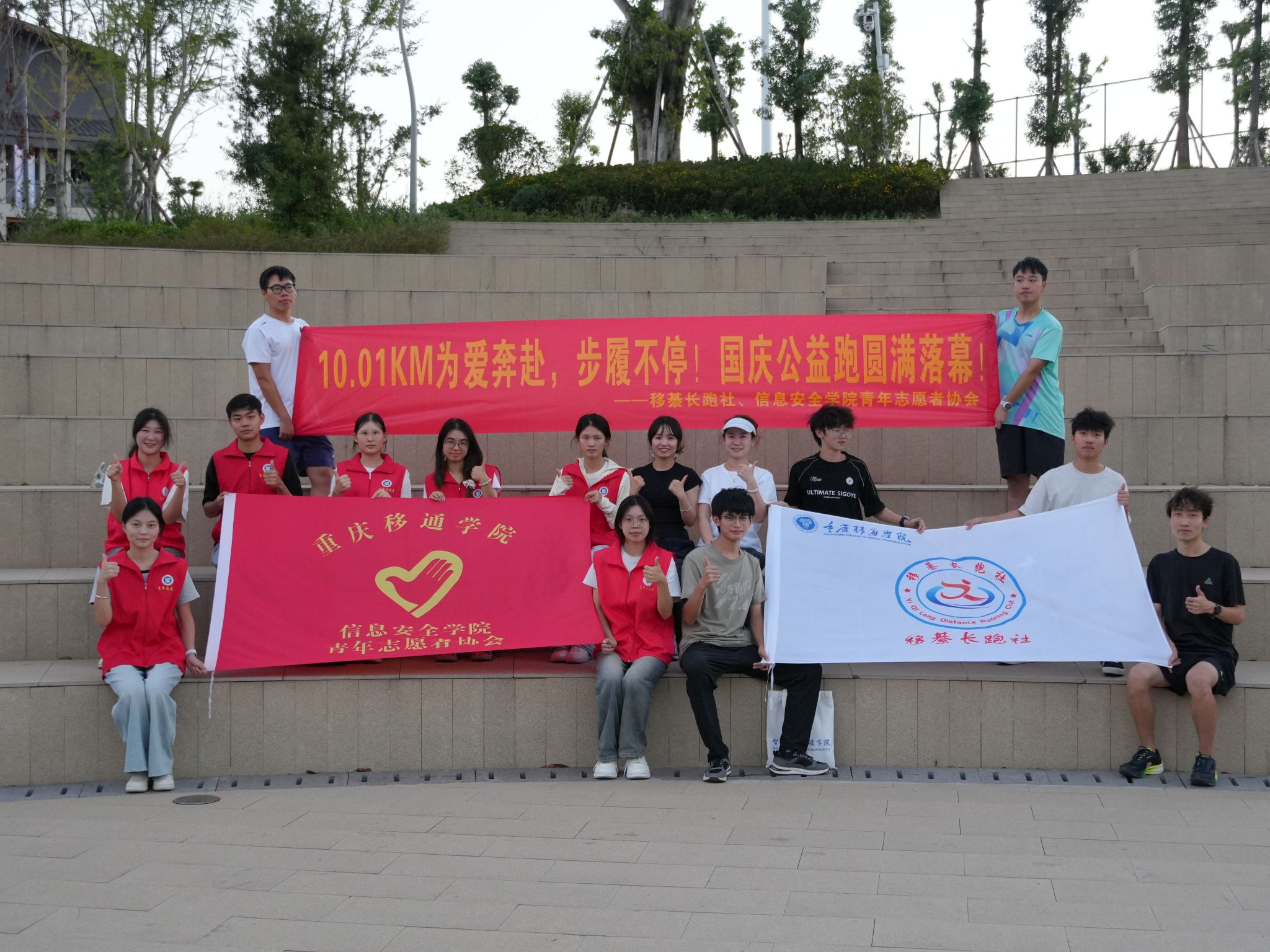 10.01公里,既是一段体能挑战的距离,更是一次涤荡心灵、升华思想的旅程。它连接着个体的坚韧执着与国家的宏伟梦想,承载着青年一代对强健体魄的追求、对祖国的赤诚热爱以及对社会的责任担当。重庆移通学院的学子们用坚实的脚步丈量大地,用辛勤的汗水浇灌青春,在这场充满象征意义的奔跑中,跑出了新时代青年的精神高度、人生态度与公益温度。未来,移綦长跑社与青年志愿者协会将继续携手,推动更多“体育+公益”项目的落地,让奔跑不止于赛道,让爱心传递得更远。