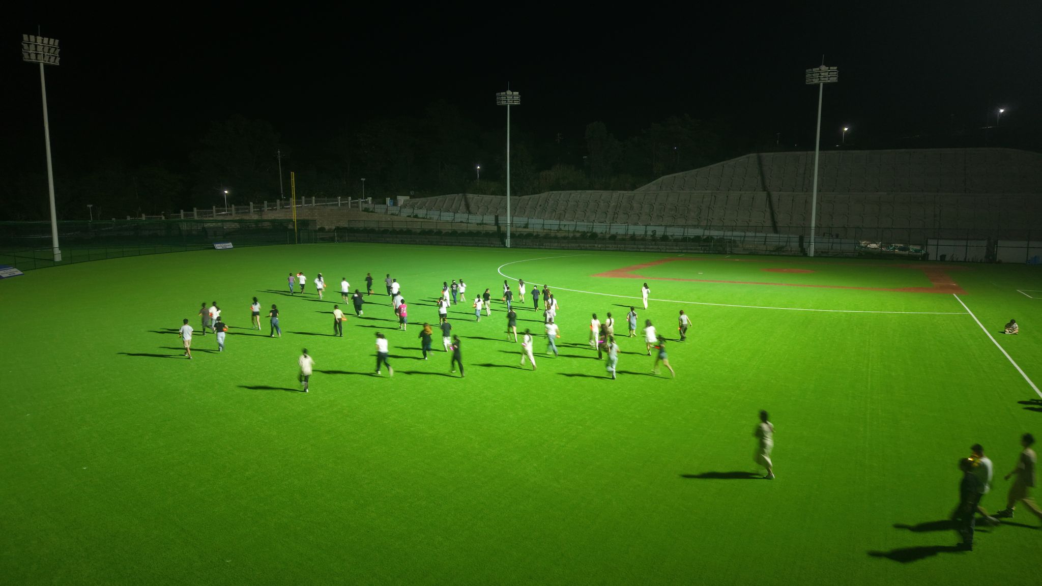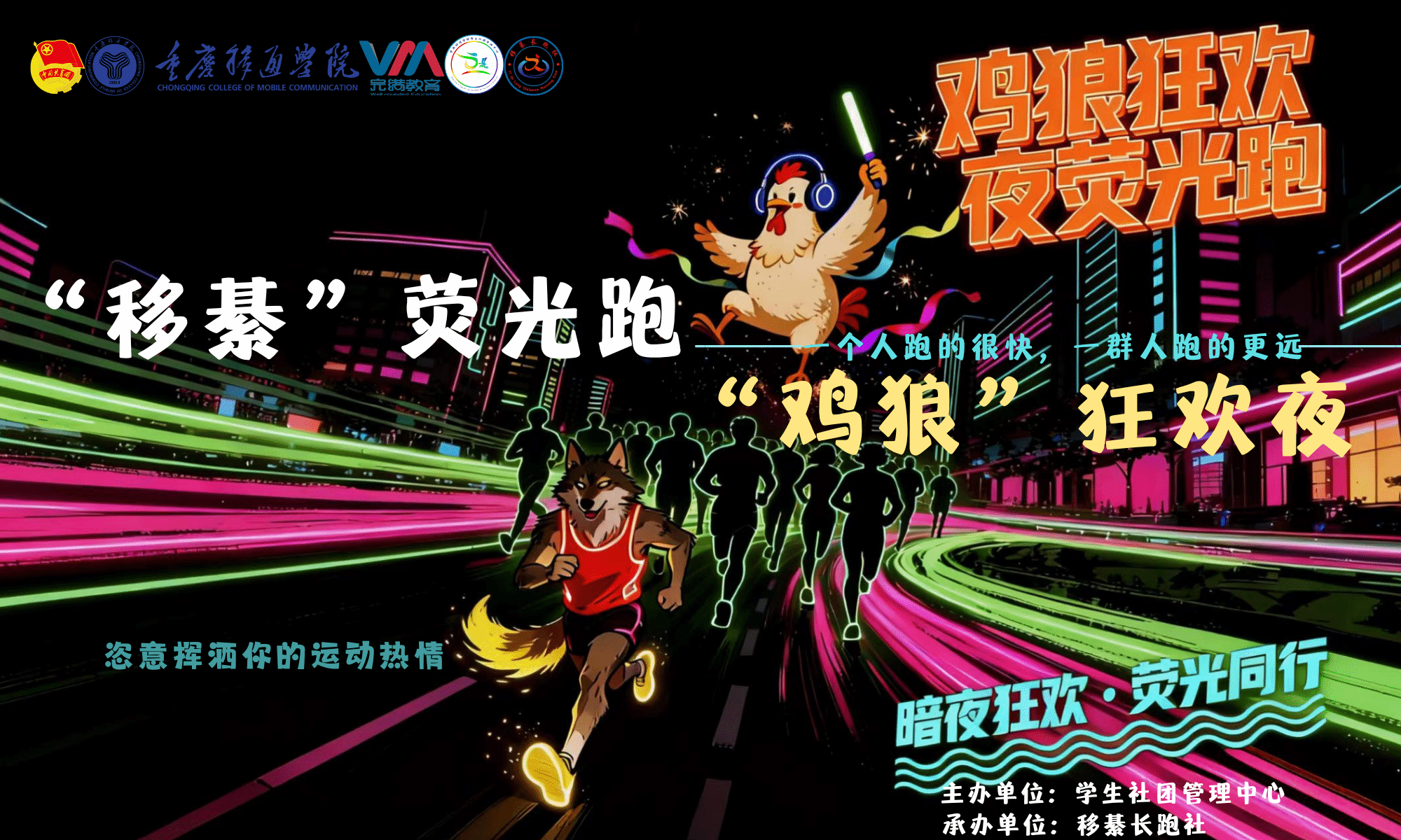 2025年10月10日的夜晚,重庆移通学院綦江校区的棒垒球场,被一片流动的荧光点亮。由移綦长跑社承办的“移綦荧光跑·鸡狼狂欢夜”在这里热烈上演。300名学生化身“小鸡”与“黄鼠狼”,在夜色中奔跑、追逐、欢笑,用一场别开生面的荧光派对,诠释了“兴趣爱好如何照亮社团之路”。