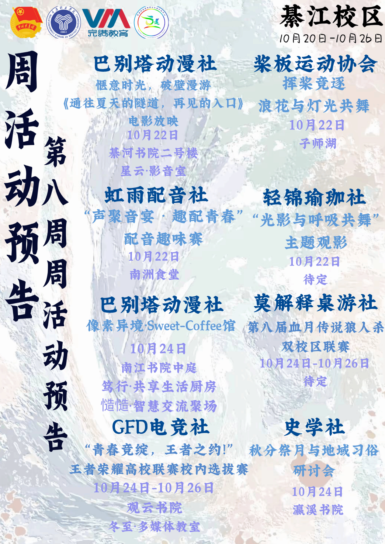 社团精彩不停步,更多惊喜已就位!第五周,期待和每一位同学温暖相遇,一起沉浸在这份鲜活的青春社团时光里,解锁更多快乐!