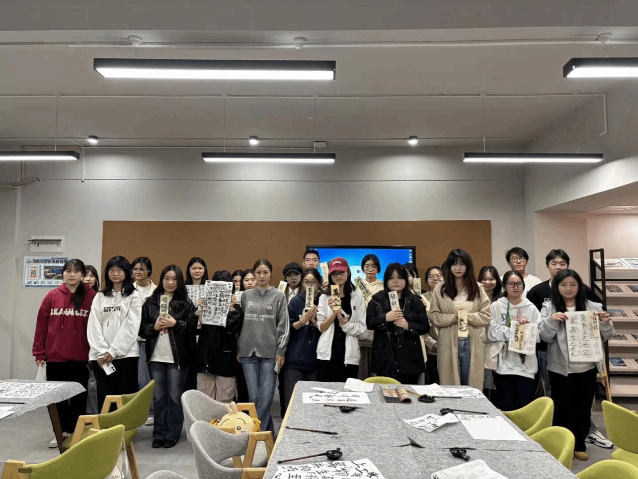 交流互动环节将活动推进了尾声,同学们热情地讨论着自己对书法作品的理解,兴高采烈地展示自己的作品,交流想法;活动在同学们与工作人员的共同合影中落下了帷幕,定格下了这短暂美好的瞬间。