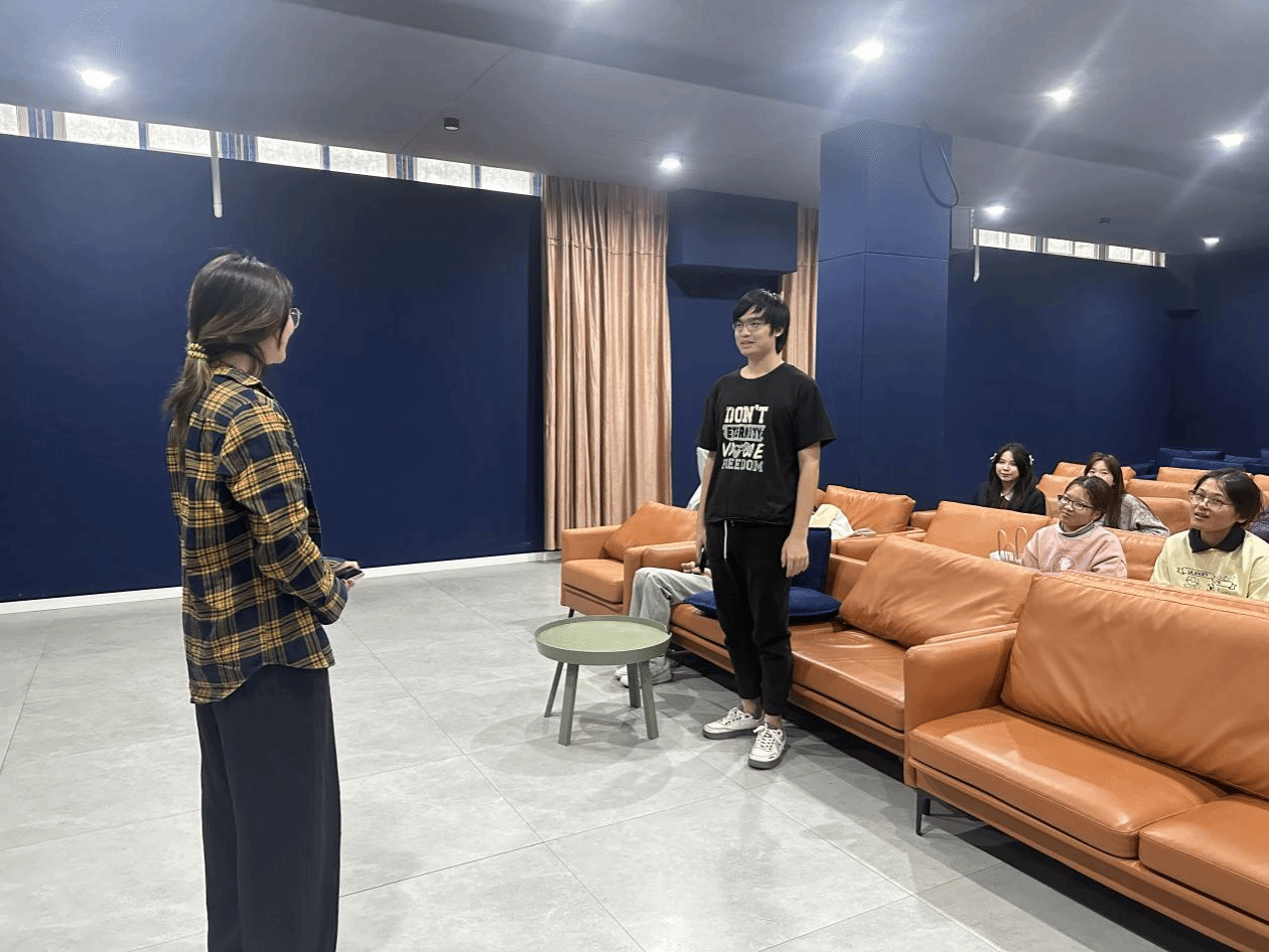 策划组主动对接綦河书院,确定银河·影音室为活动场地后,前往现场调试投影仪、音响等设备,确保影音播放效果达到最佳,同时统计参与人数,提前规划现场座位排布,全力保障活动筹备工作有序推进。