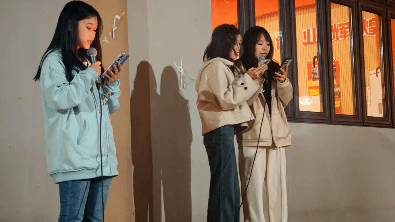 首位表演者带来民谣歌曲《成都》,吉他旋律响起时,现场不少师生轻轻跟唱;第五位表演者演唱原创歌曲《校园的夜》,歌词中 “图书馆的灯、操场的风” 等校园元素,引发在场学生强烈共鸣,台下掌声此起彼伏。每首歌结束后,主持人都会与歌者简短互动,分享歌曲背后的故事或演唱心得。在 “自由吟唱” 环节,来自淬炼商学院的李同学主动举手,即兴弹唱《同桌的你》,熟悉的旋律瞬间点燃全场,部分师生打开手机手电筒挥舞,形成一片 “星光海洋”,现场氛围达到高潮。