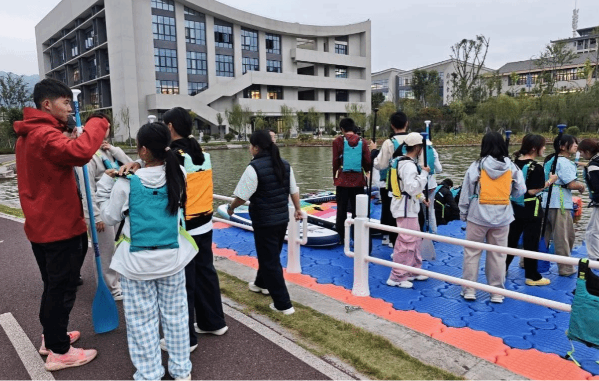 活动前夕,舟艇社成员群策群力,对活动流程进行细致推演。从场地实地勘察、器材全面检修,到安全预案精心制定,每一环节都力求滴水不漏,为参赛同学筑起坚实的安全屏障。10月24日下午17时,社团工作人员已在子师湖畔完成场地布置,清晰划分比赛区、休息区与应急区,10块娱乐桨板、30余件救生衣整齐排列,更有暖心的姜汤静候,为秋日湖水添上一抹温情。赛前半小时,王宁教练为所有参赛者带来一场生动实用的安全培训——从划桨的正确姿势,到板上如何稳住身形避免落水,再到落水后的冷静自救,每一句讲解都凝聚着教练的用心,也点燃了学子们的参与热情。王教练的耐心指导让大家迅速掌握基本技巧,为比赛的顺利开展奠定坚实基础。