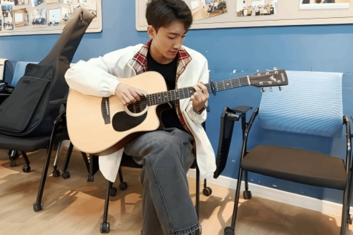 活动现场没有复杂的舞台布置,却处处透着温馨。多媒体屏幕上循环播放着吉他和弦指法教学视频,工作人员穿梭在参与者之间,时而俯身指导扫弦节奏,时而帮忙调整吉他音准;桌上整齐摆放的简易弹唱曲谱,让不少初次尝试的参与者快速找到节奏。