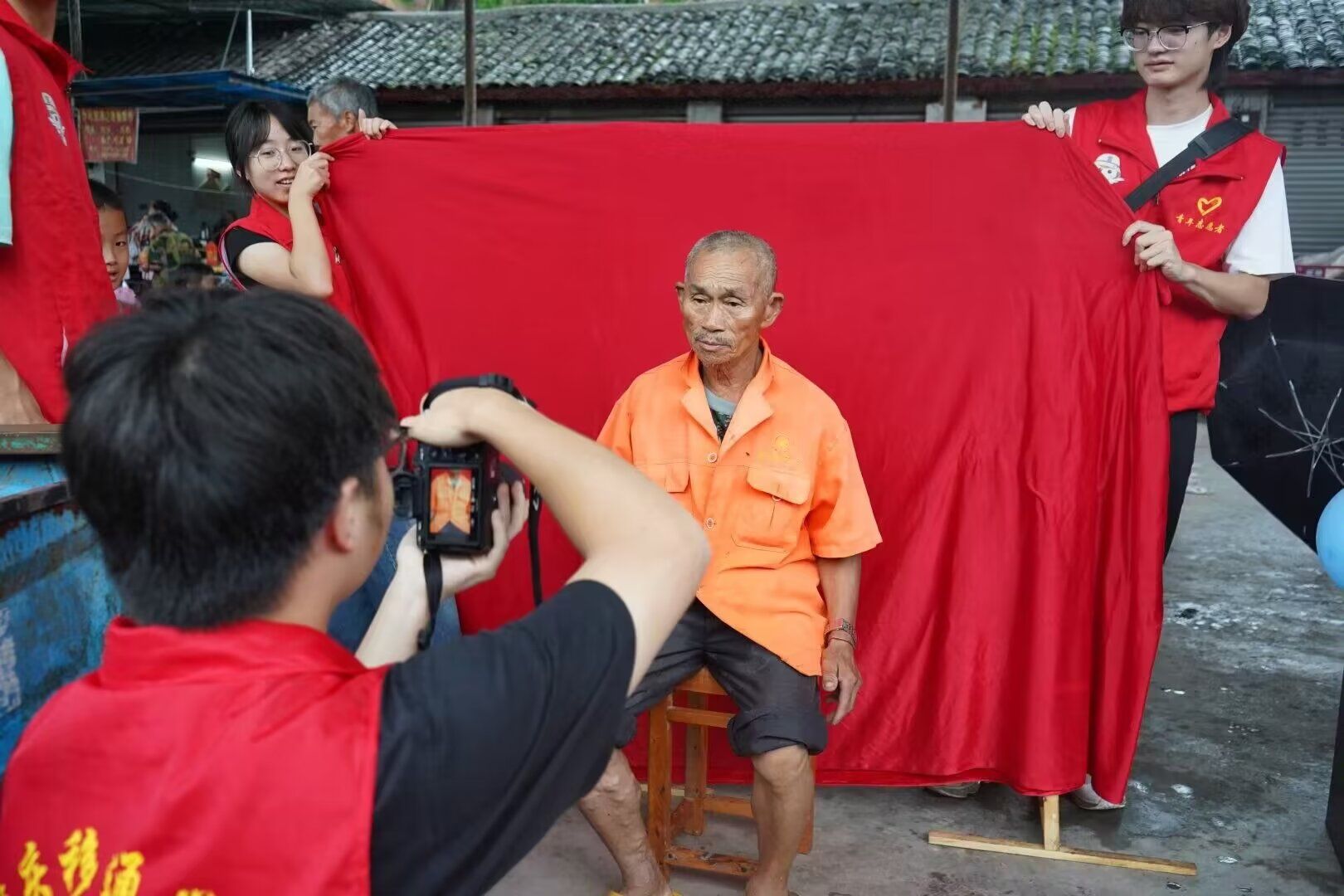 在深入农村开展精神养老调研活动的过程中,“‘乡’约盛夏,情系桑榆”国情观察实践团带着一份为老人们留住美好瞬间的美好愿景,带着镜头走进乡村,为村里的老人们拍摄证件照,记录下他们岁月静好的一帧,用关爱温暖他们的心。2024年7月5日,实践团前往合川区梳铺村展开以“夏暑情浓,悦享光影时刻”为主题的实践活动。