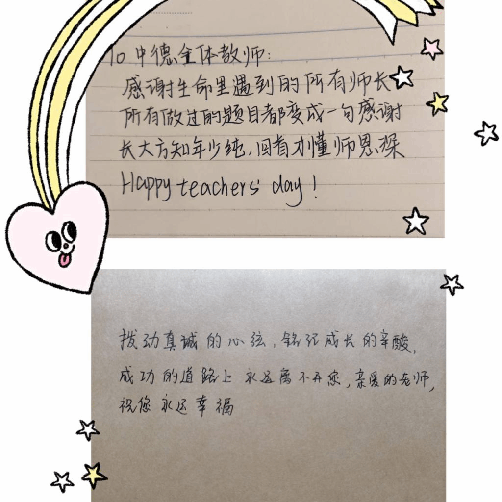 秋菊溢彩,桃李芬芳。为庆祝第37个教师节,营造浓厚的尊师重教氛围,增进师生之间的感情。移通各级志愿服务组织开展了丰富多彩的教师节感恩活动,志愿者们用实际行动来致敬最美教师,一张张精心制作的手写贺卡、一条条充满真诚的祝福短信......充分表达了广大移通学子对恩师的感恩之情。