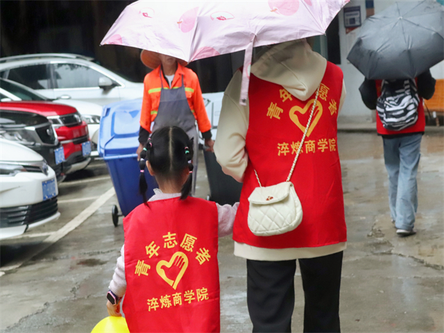 为进一步辐射宣传范围、强化宣传成果,志愿者们还组织社区小朋友参与大气污染宣传活动。一群大大小小的“红马甲”穿梭在社区街道的各个角落,向社区居民发放大气污染防治小手册,为阴雨绵绵的东津沱社区增添了一抹亮色。