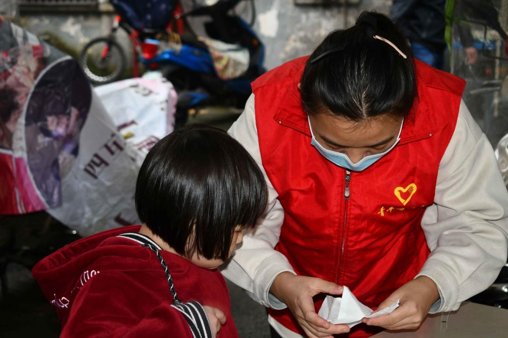 新学期,志愿者出现新面孔,为志愿服务增添新血液,让爱心得以延续。一群穿着红马甲的志愿者准时的出现在草花街,小朋友们激动大喊:“志愿姐姐哥哥来了!”志愿者们脸上洋溢着笑容,用热切地语气向小朋友问好。志愿者拿出羽毛球、乒乓球等,盛情邀请小朋友加入运动中来。小朋友们活泼好动,表现出高涨的热情,羽毛球在空中划出一道优美弧线,乒乓球在球台上来回荡漾,此刻志愿者和小朋友的嘴角微微上扬,无边无际的欢笑在运动中蔓延。