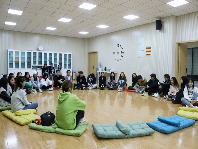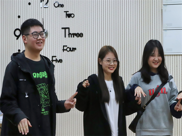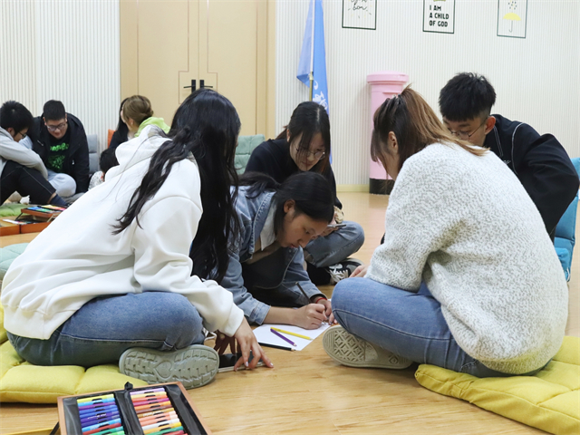 活动伊始,晴天心理站的主持人为大家倾情介绍了暖场小游戏--“你追我逃”的游戏规则,同学们围成一个圆圈,左手比一、右手掌心水平向下,根据主持人的口令做出对应的动作,当主持人的话中出现屏蔽字后,要立刻抓住左边同学的手并躲开右边同学的抓捕。随着游戏的进行,此起彼伏的欢笑声让活动室逐渐升温,暖黄色的灯光照亮了每一位同学的笑颜,大家也渐渐放松下来,沉浸在这最纯粹的一刻光阴,将自己在学习、生活中的烦恼抛之脑后,一步步融入这个集体、倾诉心底真实的声音。