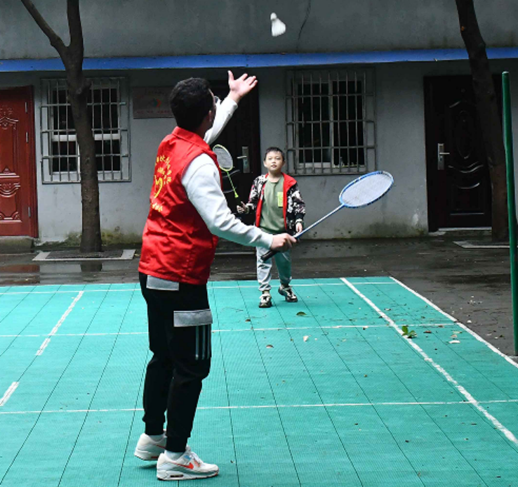 新学期,志愿者出现新面孔,为志愿服务增添新血液,让爱心得以延续。一群穿着红马甲的志愿者准时的出现在草花街,小朋友们激动大喊:“志愿姐姐哥哥来了!”志愿者们脸上洋溢着笑容,用热切地语气向小朋友问好。志愿者拿出羽毛球、乒乓球等,盛情邀请小朋友加入运动中来。小朋友们活泼好动,表现出高涨的热情,羽毛球在空中划出一道优美弧线,乒乓球在球台上来回荡漾,此刻志愿者和小朋友的嘴角微微上扬,无边无际的欢笑在运动中蔓延。