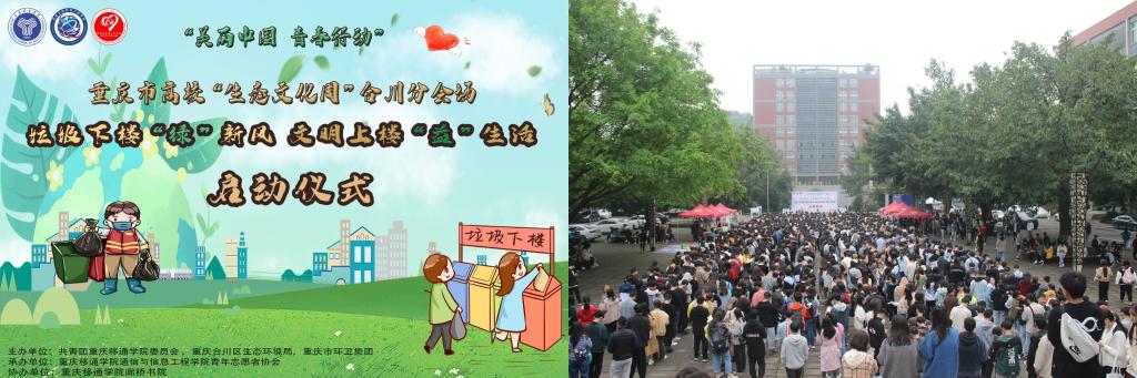 为进一步贯彻落实“绿色环保”理念,推进我校书院文明建设,营造垃圾下楼的良好氛围,2021年10月27日,重庆移通学院通信与信息工程学院青年志愿者协会联合共青团重庆移通学院委员会、合川区生态环境局、重庆市环卫集团在黄桷树广场开展“垃圾下楼‘绿’新风,文明上楼‘益’生活”系列活动启动仪式。