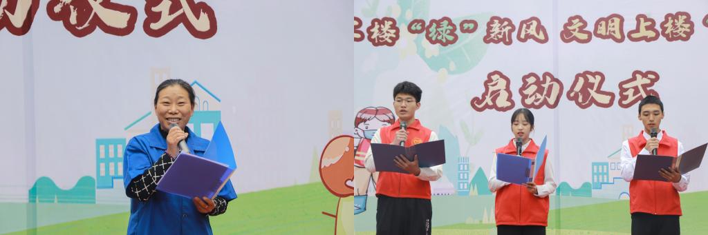 希望各位同学互相监督、互相提醒,优化生活环境,用实际行动为我校的校风建设做出应有贡献,为促进校园文明建设而共同努力!“垃圾下楼‘绿’新风,文明上楼‘益’生活”启动仪式虽圆满结束,但“绿色环保”无止尽,全面宣扬“绿色理念”,将环保之心传递,让彼此成为建设美丽校园、美丽合川的践行者。