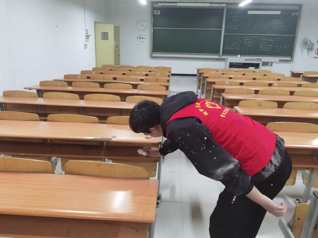 为便于志愿者们清洁工作的开展,志愿者们分为四个小组,有序地前往自己所负责的区域开始打扫。每个人都充分的发挥自己的力量,擦黑板,捡垃圾,关闭电源。经统计,志愿者们发现课桌上残留垃圾的情况依旧较多,大部分教室的多媒体电源未能及时关闭,但相较之前有了较大的改善。