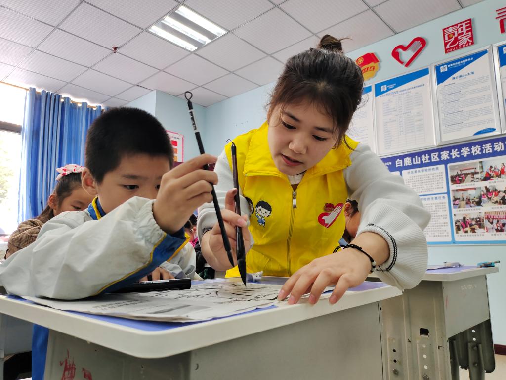 为弘扬汉字文化,传承华夏文明,2021年10月30日,通信与信息工程学院“白鹿课堂”支教社区留守儿童志愿服务支队的志愿者们同重庆对外经贸学院的志愿者们前往白鹿山社区开展“白鹿课堂”支教社区留守儿童志愿服务活动,带领小朋友一起学习手语舞,一起学习书写毛笔字,让小朋友们认识汉字的由来和发展,学习中华民族的传统书法。