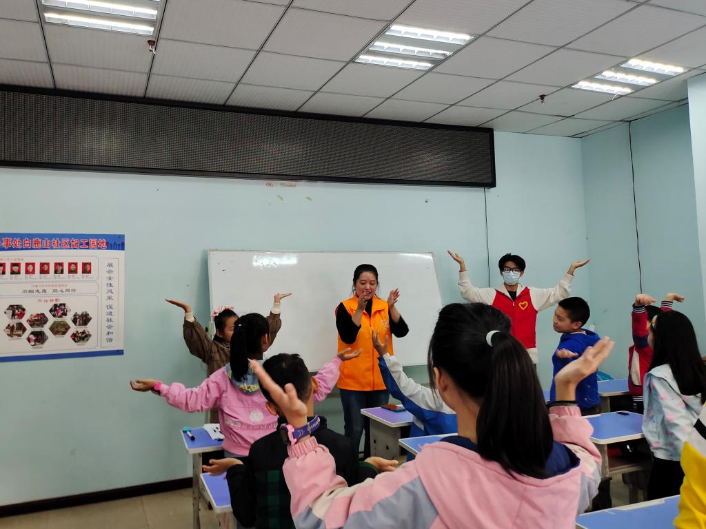 为增强小朋友们的课堂积极性,增加小朋友们的技能,由小周老师带领三位志愿者教小朋友们跳手语舞,小朋友们从简单的手语动作开始,认真地学习每一个动作。在大家的共同努力下,小朋友们初步学会了《隐形的翅膀》手语舞,期望小朋友们在未来碰到挫折也能不畏挫折、勇往直前。