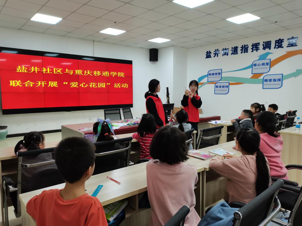 彩色课堂再启航。鉴于2021年暑期三下乡社会实践活动反响良好,经通信与信息工程学院青年志愿者协会与盐井社区领导双方决定,将“三下乡”变“常下乡”,将盐井社区作为通信与信息工程学院志愿服务新阵地,“爱心花园”支队作为此次阵地的常态化支队。