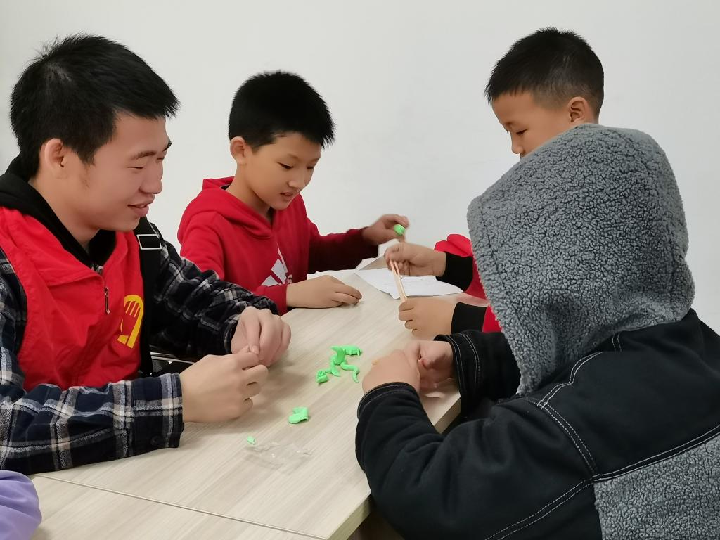 指尖艺术焕光芒。在活动的最后环节,志愿者们为小朋友们准备了画纸和粘土,让小朋友在画画和捏粘土中选择自己喜欢的,并在志愿者的带领下完成创作,意在增强小朋友们的动手能力和想象力。小朋友们发挥自己的想象,几十分钟后粘土变得丰富多样,有活泼的小乌龟、有美味蛋糕卷、还有甜美的冰激凌杯······画纸上也涌现五彩缤纷的图画,有在玻璃球里的世界、有在蓝天下高飞的鸟儿、还有温馨的小屋······再由支队长对小朋友的作品逐一展示,小朋友们面对自己的作品被展出,也同周围的小伙伴与志愿者分享这份喜悦。