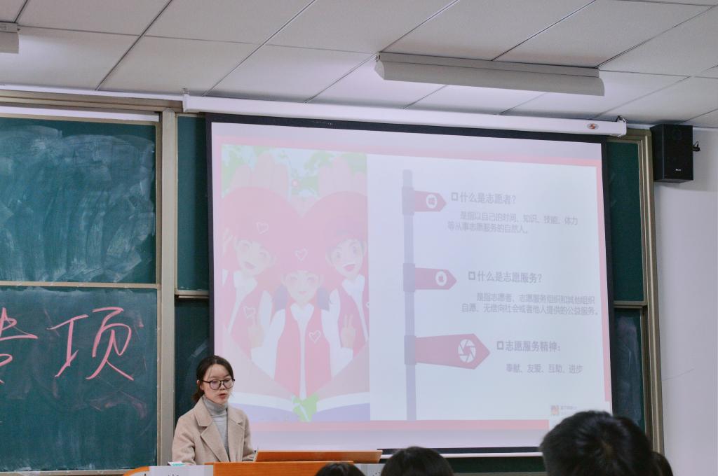 博动着青春韵律的爱心,在象征着奉献、友爱、互助、进步的志愿精神旗帜下汇聚于此。会上,李老师首先给各支队临时负责人做了基础培训,分别从什么是志愿者,志愿者行为规范,支队活动规范等方面让各负责人明白了自己的身份,明白了志愿者服务是无偿自愿的公益服务,而其中最为重要的则是奉献,友爱,互助,进步的志愿服务精神。作为临时负责人更应该做好带头作用,注意活动纪律,展现良好志愿者形象,通过活动结束后收集支队成员的心得体会及建议,及时调整活动方向,使支队可持续发展。做好支队活动长期规划,携手推动全校志愿服务活动的高效开展。