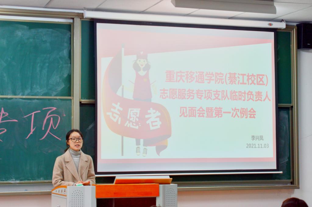 为促进我校志愿服务专业化发展,落实本学年志愿服务工作部署,贯彻“奉献、友爱、互助、进步”的志愿服务精神。2021年11月3日12:30在勇者楼207教室召开了2020-2021学年首批志愿服务专项支队临时负责人见面大会。校团委志愿服务板块指导老师李兴凤老师及各志愿服务专项支队临时负责人、各学院青年志愿者协会临时负责人等40余人参会。