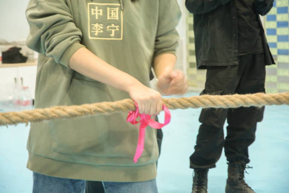 进一步相互熟悉后,大家进行了拔河比赛,两位主席牵头,分别挑选了自己的队员。大家“摩拳擦掌”,紧紧握住粗绳,随着一声令下,大家迅速往自己身后倒,每个人都使出浑身解数,都使劲儿想把绳子往己方拉,双方势均力敌,绳结摇摆不定,比赛氛围一度高涨,但杨露主席方的小伙伴们明显耐力更好,最终取得胜利并获得奖励。大家虽然脸涨得通红,却都洋溢着笑容。
