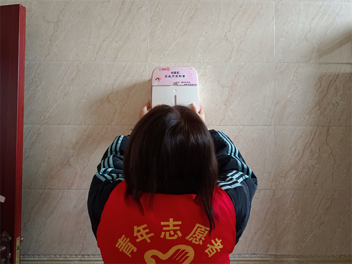 他们来到四教、五教、艺术楼、实验楼、图书馆……仔细擦拭卫生间墙面、固定盒子、张贴海报、摆放卫生巾。值得一提的是,此次铺设活动也有不少男同学的身影,他们陪着女同学爬楼梯、搬箱子……来自2020级工商管理6班的葛宇同学说:“我们男生,也可以加入关爱女性的团队,也是一股‘她力量’。”她、他、他们……点点滴滴,让“她力量”在移通校园快速凝结起来。