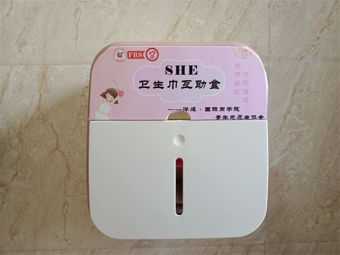 2020年,一股“卫生巾互助盒计划”的浪潮兴起,旨在“打破月经羞耻,为女性提供便利”。该计划通过在洗手间储存应急卫生巾的方式,帮助生理期未准备卫生巾的女性缓解尴尬。项目一经发起,部分高校学生迅速响应,重庆移通学院淬炼·国际商学院青年志愿者协会就是其中一员。2020年12月,淬炼青协在第五教学楼进行卫生巾投放试点。试点期间,卫生巾互助盒获得了师生一致好评。2021年3月,淬炼青协特成立SHE关爱女性志愿服务专项支队,支队成立后将南校区作为移通的“互助盒计划试验田”,实现南校区女厕所全覆盖。