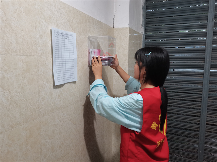 在学校11月“青年信用体系推广建设月”的背景下,结合诚信商院项目理念,此次“互助盒焕颜行动”遵循“取一还一,让爱循环”的原则,呼吁广大同学共同维护,助推互助盒长效运行。为此,志愿者们为互助盒贴上了暖心标语和存取记录,引导同学们正确使用,取一还一。SHE关爱女性志愿服务专项支队的支队长杜冰艳发出号召:希望同学们诚信使用卫生巾互助盒,应急取用后及时归还,为她们提供便利,让关爱女性的力量得以传递!