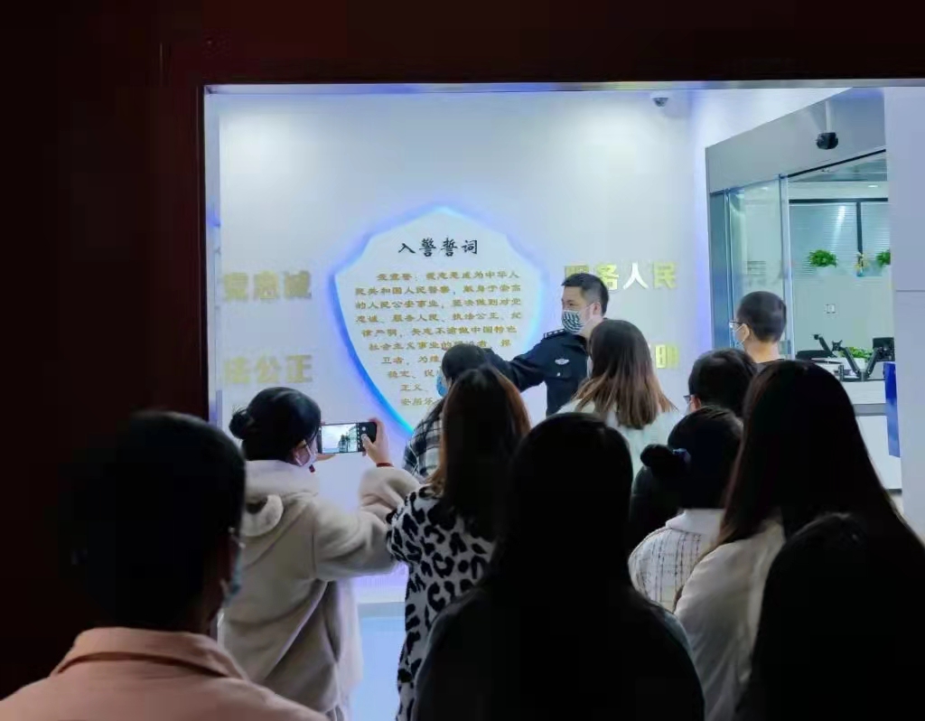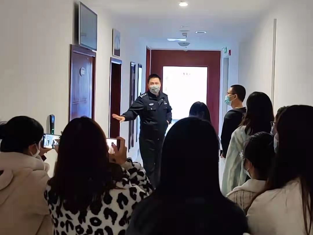 走进合川反诈中心,重庆市合川区公安局刑警支队新型犯罪侦查大队副大队长吴爽铭警官热情地接待了来自移通学院的同学们。吴警官对每一个来到反诈中心的同学说,希望同学们在此次的反诈中心交流中都能有所收获,当好高校反诈的宣传员。吴警官带领同学们参观反诈骗中心内可供参观的工作场地,耐心细致的为大家介绍反诈中心各部门间的分工职责与任务。