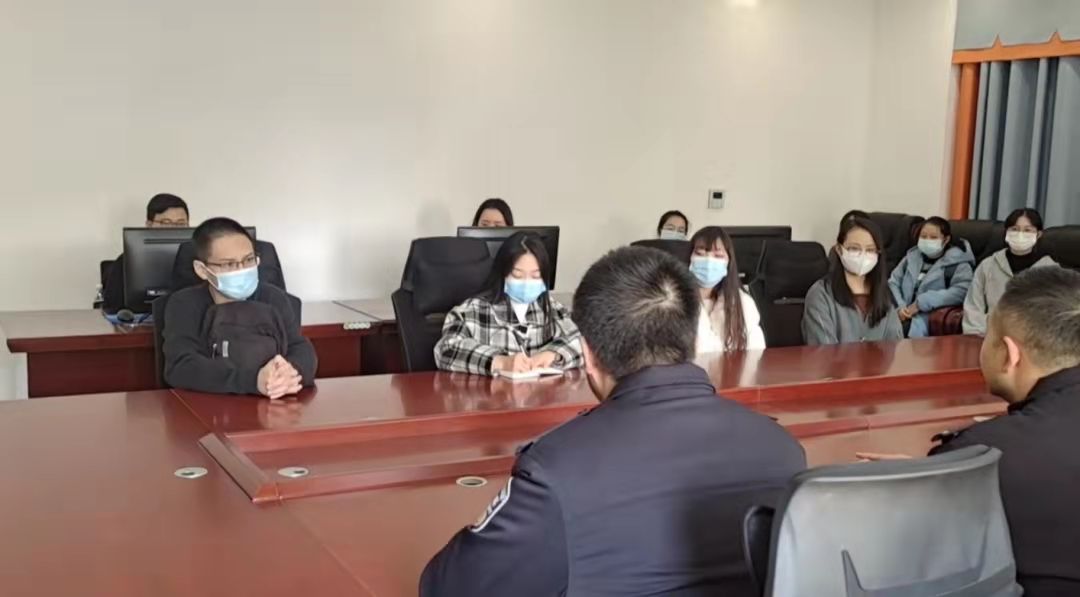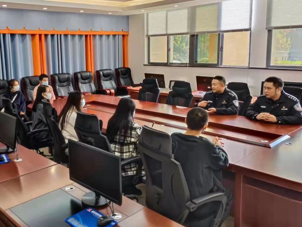 在接下来的座谈交流中,新型犯罪侦查大队大队长付沛吴警官对我校建立的防诈骗专项支队表示十分的认可,并且认为防诈骗队伍在高校内应该不断的壮大,同时希望专项支队能够发挥其作用真正做到服务师生。随后吴警官还给同学们讲解了一些常见的诈骗形式,并向同学们介绍一些近期出现的新型诈骗手段,让同学们多加甄别和防范。针对现场同学提出的频繁接到境外电话骚扰的问题,吴警官给同学们介绍了个人信息保护的注意事项和通信服务公司推出的骚扰拦截功能。最后付大队长对我校的防诈骗工作提出建议,希望我校能推动合川反诈卫士小程序在全校的普及,与合川反诈中心一起形成一股合力,共同预防电信诈骗案件在高校的发生。