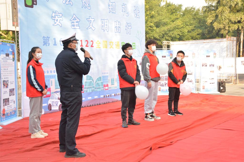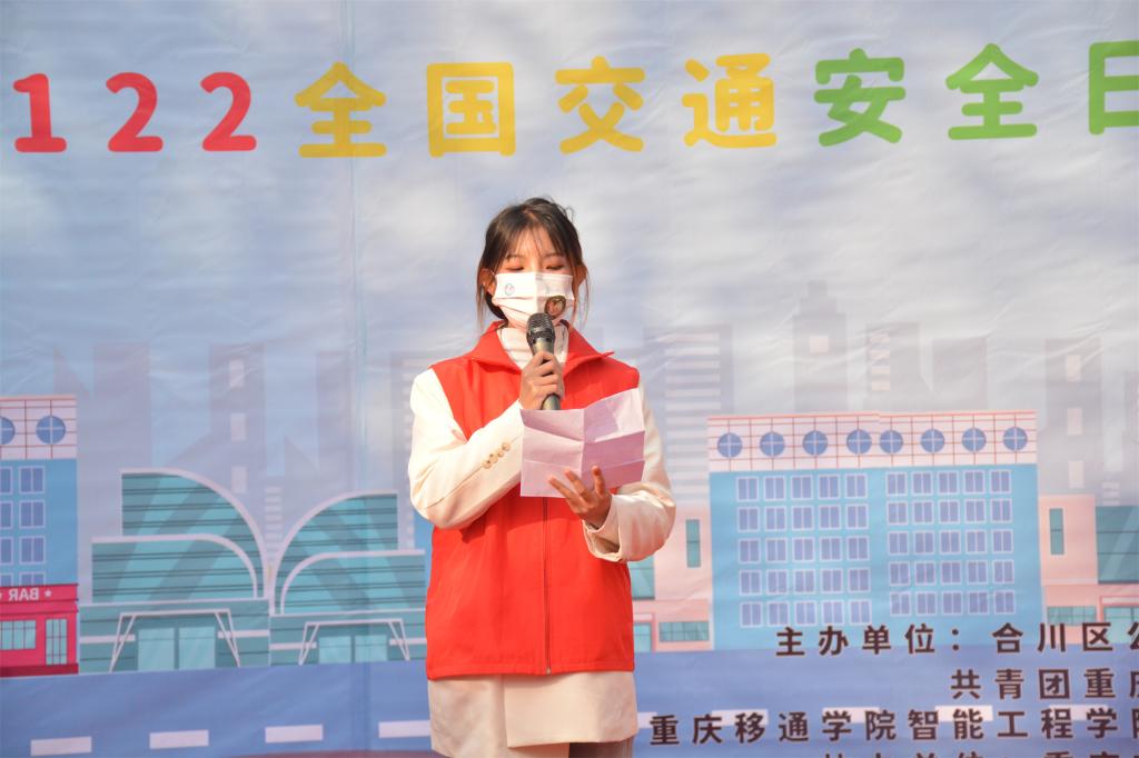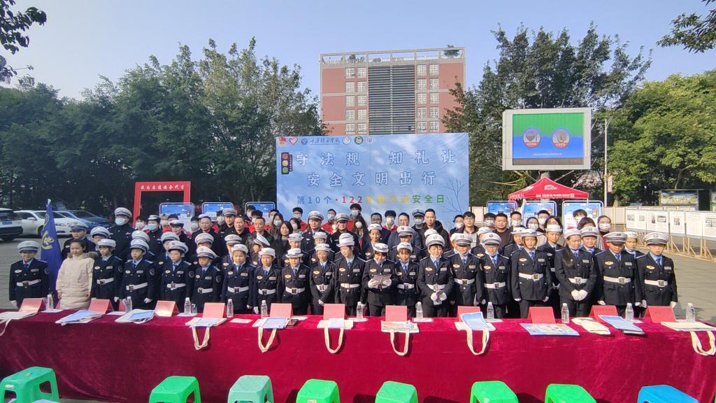 2021年12月2日,全国第10个交通安全日,重庆移通学院智能工程学院青年志愿者协会联合合川区道安办在黄桷树广场举行“122全国道路交通安全日”主题活动。莅临本次活动的嘉宾有合川区公安局交巡警支队支队长何强、濮湖小学副校长陈爽、合川区区委宣传部、区城市管理局、区应急局的各单位代表,以及重庆移通学院副校长周伟、校保卫处处长彭洪、团委副书记谢银平、智能工程学院副院长李巧与各位老师们出席本次活动。