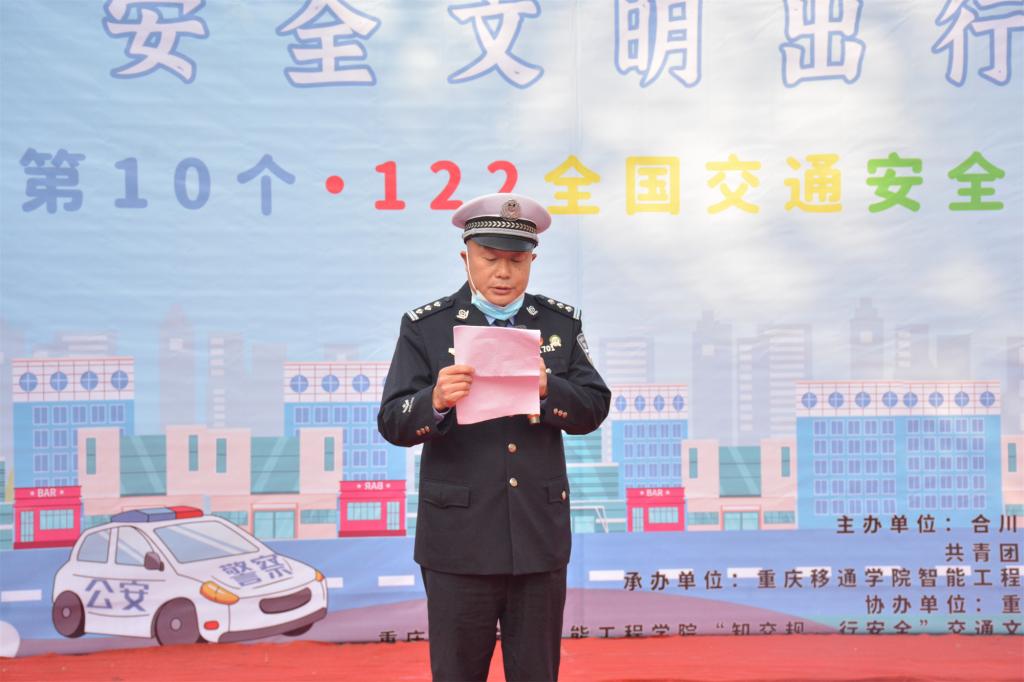 合川区公安局交巡警支队支队长何强同志也表示,“道路千万条,安全第一条”。近年来,因为大学生引发的交通安全事故逐年递增,大多数都因为大学生骑行摩托车导致。在此在第十个“122”全国交通安全日倡导大家要“守法规,知礼让”安全文明出行。