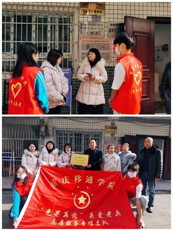 为进一步提升同学们志愿服务实践能力,使得志愿服务正规化、服务对象专业化,同时提高同学们的爱国爱党热情,淬炼·国际商学院“光芒再放”关爱老兵志愿服务专项支队与綦江区通惠街道登瀛社区建立长期合作伙伴关系。2021年12月2日,我院志愿服务板块指导老师肖琳老师带领支队走进登瀛社区,与该社区合作共建志愿服务基地,举行签约仪式。