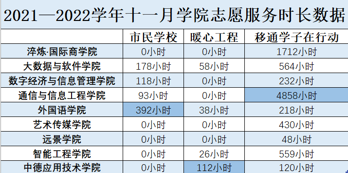 为更好营造学校志愿服务氛围,倡导随手公益,人人来参与,鼓励各班团支队自主开展志愿服务活动,提高基层班团支队志愿服务参与度,促进志愿服务工作可持续发展。我校联合两个校区开展以“青春益暖・志愿移通”为主题的第四届“最热公益班团支队”实践主题活动。通过线下活动开展与线上微电影方式相结合,带给大家不一样的志愿体验!