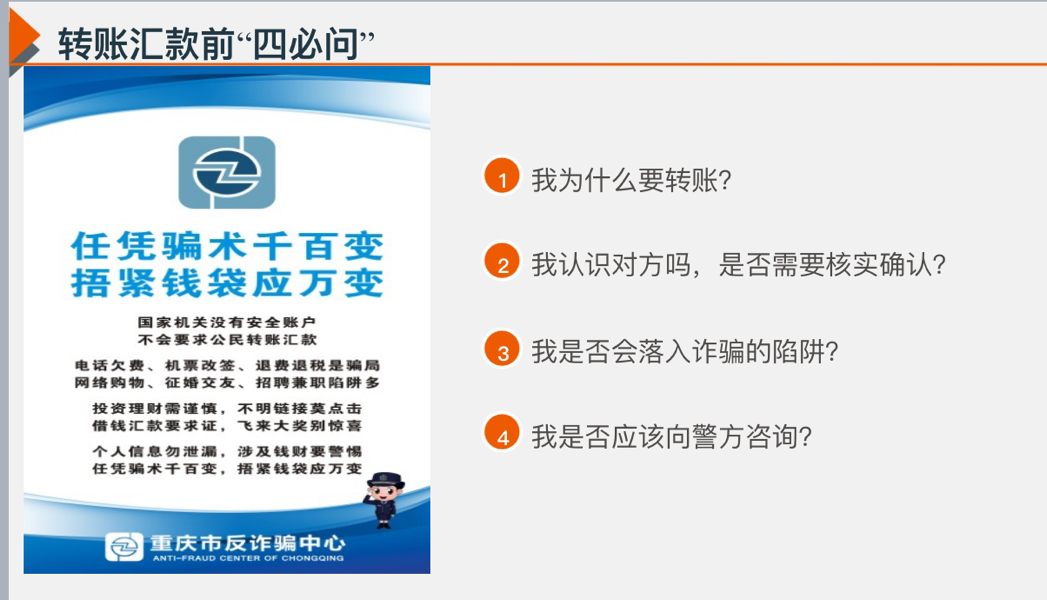 为预防我校学生遭受电信网络诈骗,提升我校学子的反诈防诈意识和能力,牢筑移通网络诈骗“防护墙”,营造校园反诈骗氛围,远景学院于11月17日特邀请重庆市合川区公安局刑警支队新型犯罪侦查大队副大队长吴爽铭警官来到学院进行高校大学生预防电信网络诈骗主题宣讲。
