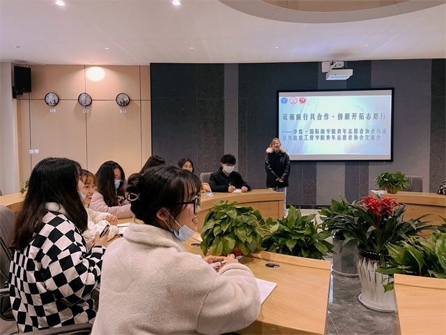 为加强兄弟学院青协交流与合作,进一步促进我校志愿服务深入发展,12月3日,淬炼·国际商学院与通信与信息工程学院在双校区建设大背景下于南湖书院圆桌会议室开展了以“砥砺前行共合作·创新开拓志愿行”为主题的交流会。本次会议邀请到淬炼·国际商学院指导老师曾玉娇、通信与信息工程学院指导老师苟凡铖和王艺,参会师生共计20余人。