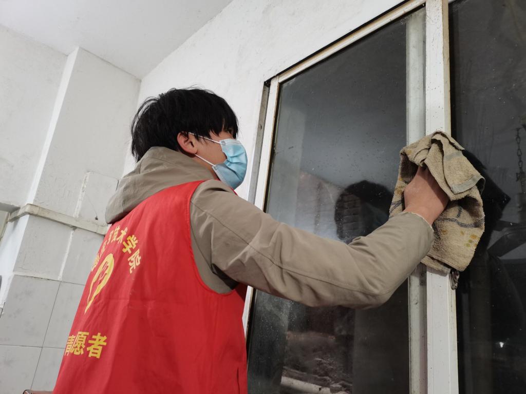 下午四点整,志愿者们乘车抵达九九老年公寓。抵达后,志愿者们便开始了志愿活动。有的志愿者搀扶老人在走廊外散步和聊天,有的志愿者为老人捶背按摩,有的志愿者为老人们整理床被,将屋子里的灰尘和院中的落叶打扫干净。