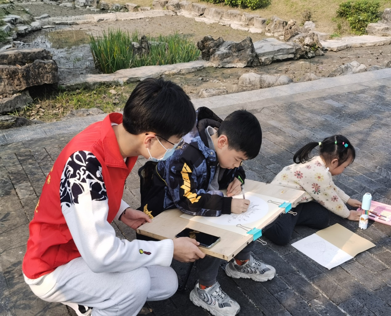 2021年12月05日下午,重庆移通学院智能工程学院“爱的n次方-四点半课堂”支队的志愿者们来到文峰古街协助合川区青少年活动中心开展了以“多情三江水,最美凌霄阁”为主题的特色写生活动。