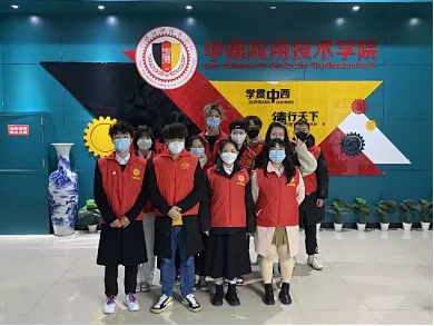 (图为中德应用技术学院2021级工商企业管理2班班团支队,开展第六教学楼进行打扫活动,志愿者们在各个教室中穿梭,将桌椅摆放整齐,将黑板处的粉尘清理干净)