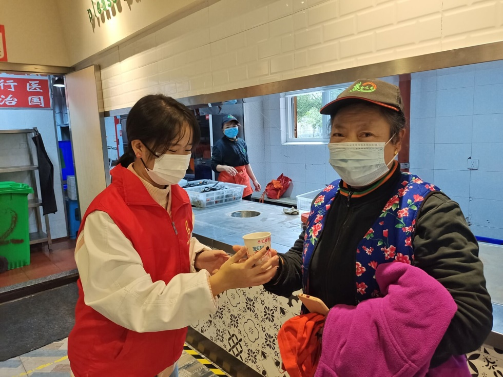 (图为外国语学院05022102班团支队,开展了以冬暖为题的活动,同学用热情和爱心为移通的工作人员和教务人员送去了温暖的红糖水)