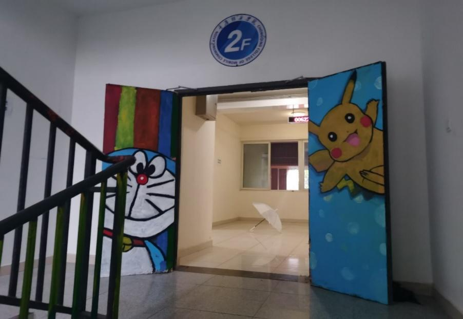(图为远景学院2021级04团支部,开展了“梦有起点,爱心无终点”的主题爱心活动,对宿舍楼道涂鸦)