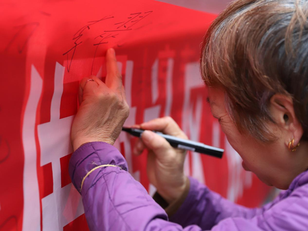 同学们耐心引导居民填写反诈问卷,并发放防诈骗宣传单,向居民们普及网络安全常识,谨防诈骗。随后居民们在反诈骗横幅上签字并与“合川反诈小卫士”合影,纷纷表示以后会提高警惕,保护好自己的“钱袋子”。