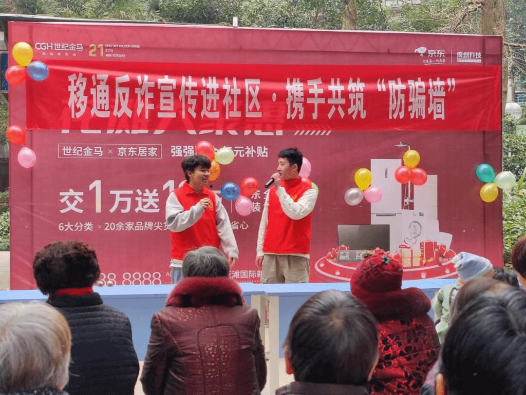 网络购物陷阱重多,为提高居民们对诈骗的认知,了解现在的诈骗现状,2021年12月10日下午,金马世纪学府中央“四点半”课堂志愿服务专项支队与2021级广编6班联合开展了“防诈骗进社区”活动。在异科导师肖哲的指导下,本次活动围绕以购物狂欢节为背景,宣传防诈骗,通过表演模仿秀、诈骗盲盒、问卷调查、案例分享等,去提高居民们的防范意识。