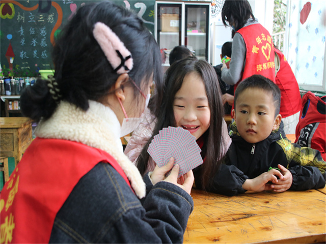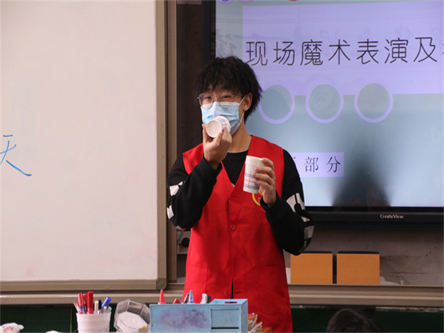 志愿者们不仅通过视频向小朋友们展现了魔术的魅力,还将魔术表演带到现场。一月有余的准备时间,让志愿者们零失误地完成了这场魔术展示,他们巧妙地利用纸牌、头绳、魔方、硬币、纸杯等花样百变的道具,让孩子们近距离感受到了魔术世界的精彩。一时间,教室里的欢呼声、惊叹声此起彼伏。